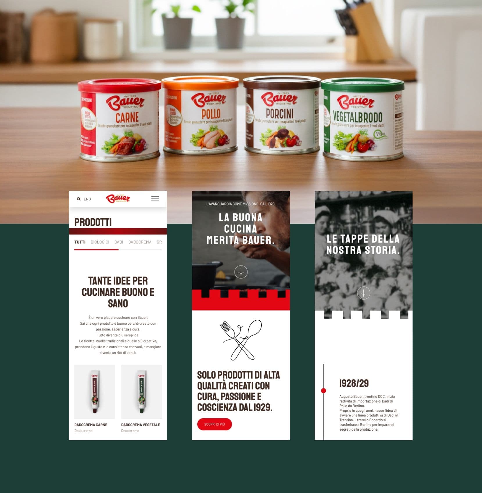↔BAUER, azienda italiana specializzata in dadi da brodo e insaporitori di alta qualità, ha affidato a TEAM99*, in collaborazione con RED ROBIGLIO & DEMATTEIS, la realizzazione del nuovo sito web. L’obiettivo era trasmettere online la genuinità artigianale del brand, unendo evocazione visiva e storytelling a un'interfaccia moderna e coinvolgente.√